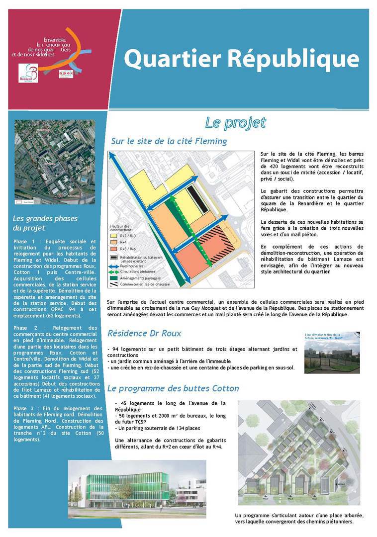 Panneau de concertation dans le cadre de l'etude d'impact pour la zac de rénovation urbaine du quartier république à bonneuil sur marne